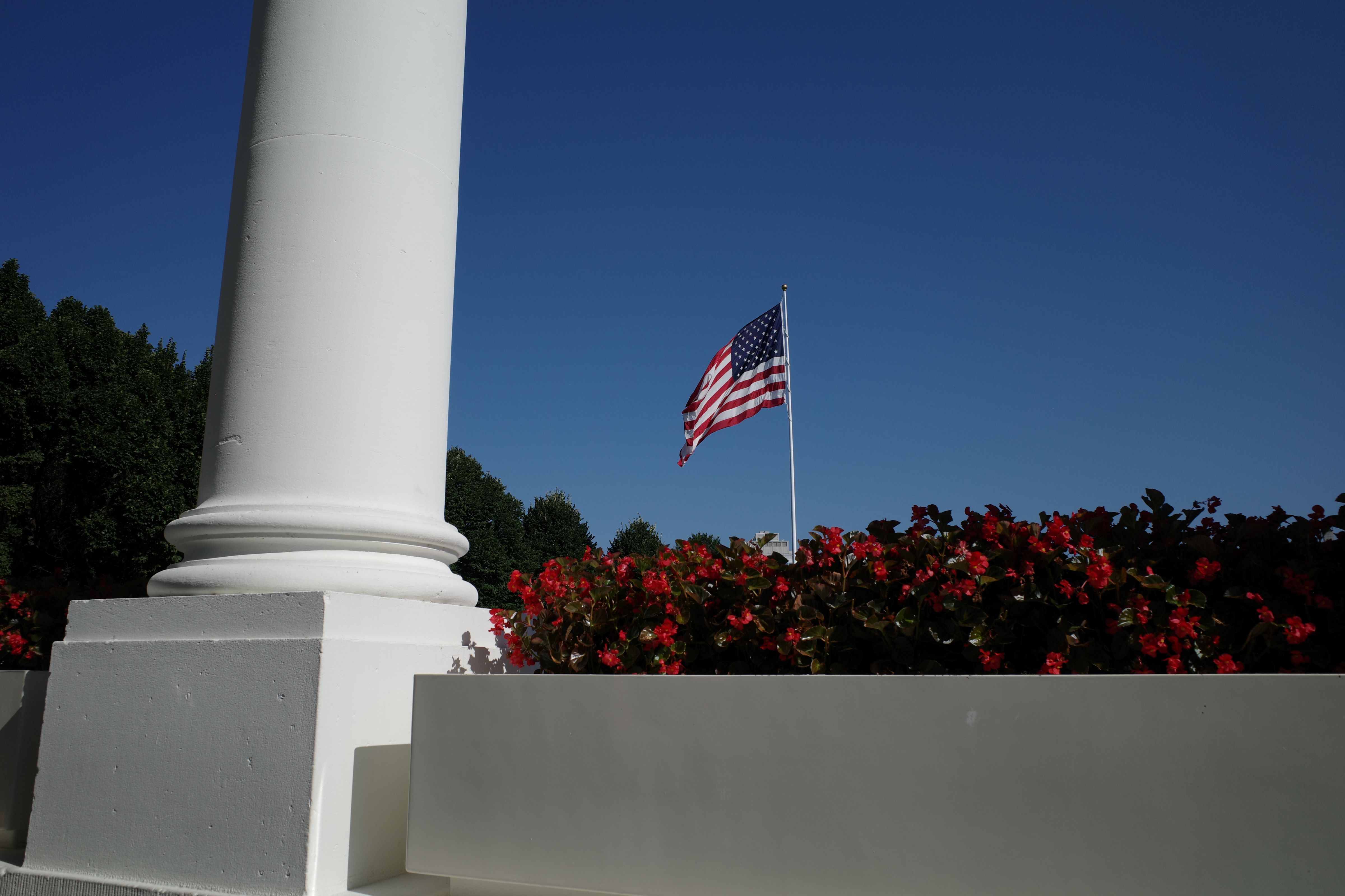 大家沿着一个方向往前走,至白宫一楼北侧主门厅出口结束整个白宫内部的参观。人们三三两两在花园里相互拍照,有的还跟家人朋友打开了视频通话。